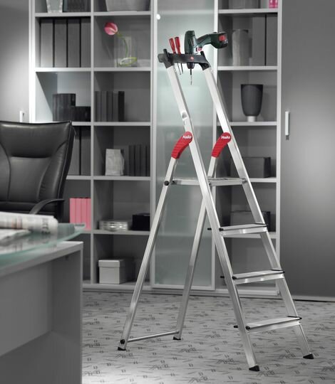 Стремянка Hailo, серия L80 ComfortLine, 4 широкие ступени, 13 см. ,алюминиевая, с лотком для инструментов, арт. 8040-407
