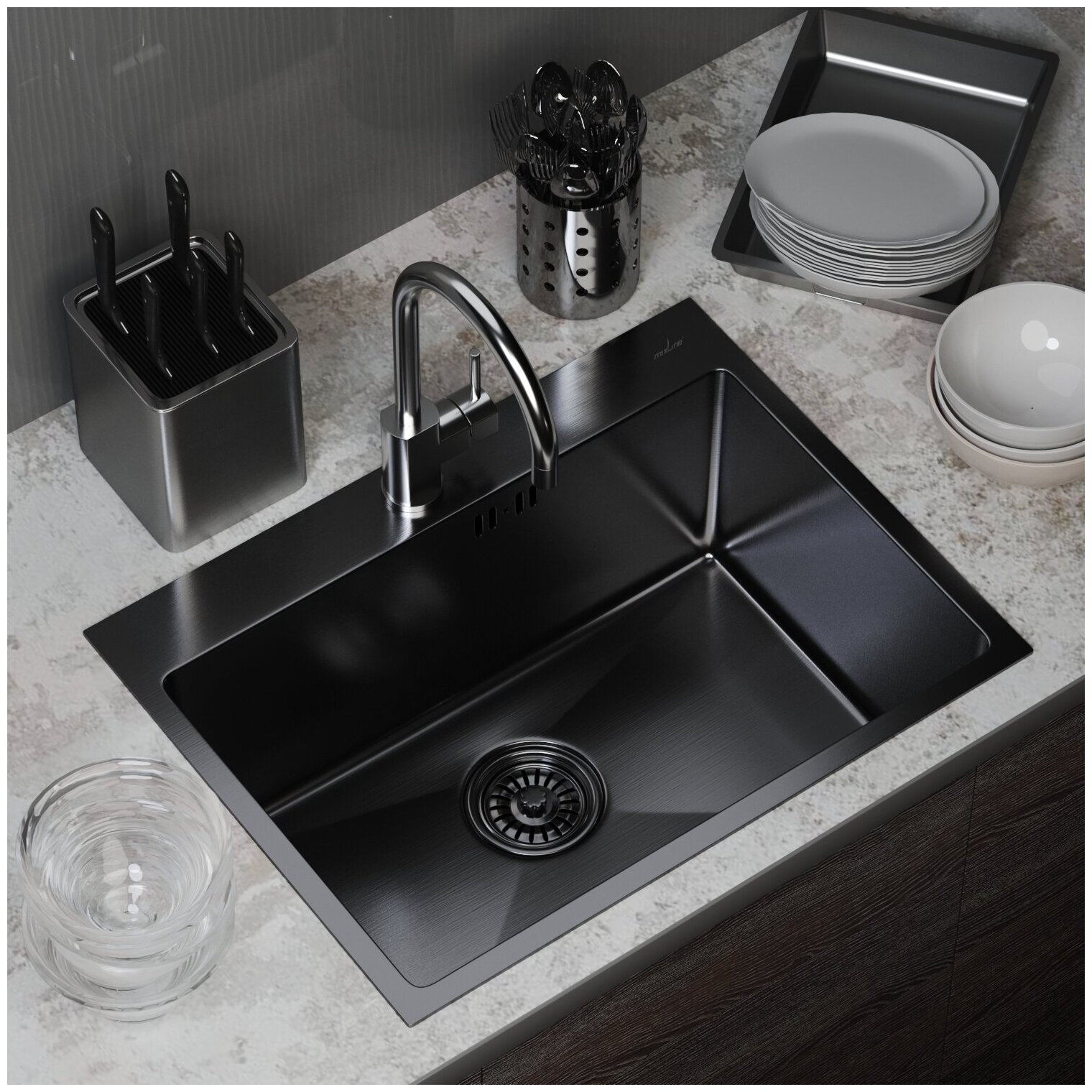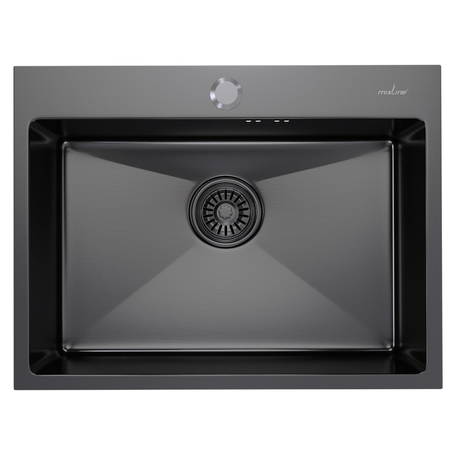 Мойка для кухни Mixline Pro 600х450х200 мм врезная прямоугольная с сифоном нержавеющая сталь черная (547236)