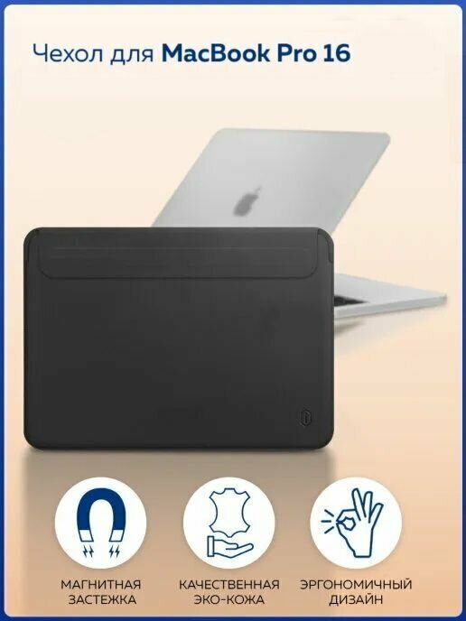 Чехол для MacBook Pro 16 WIWU Skin New Pro 2 Leather Sleeve Black