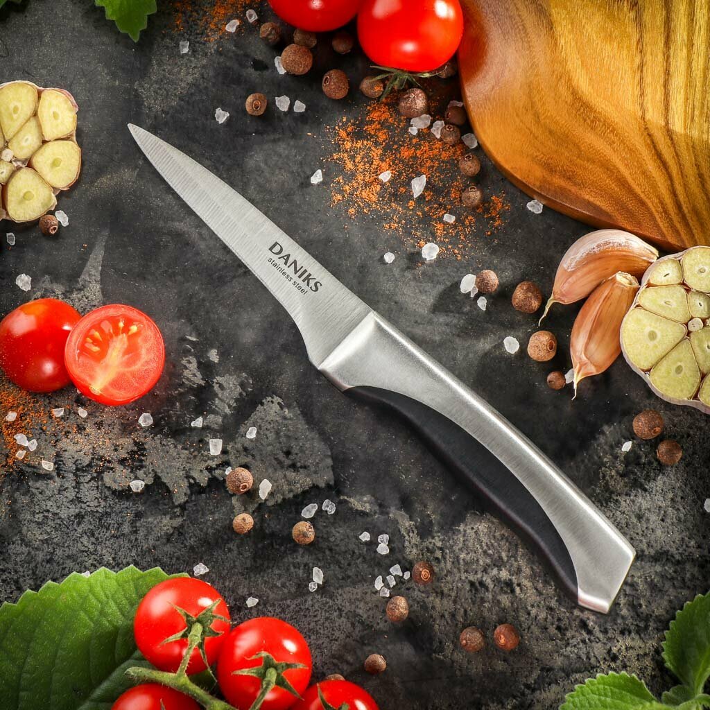 Нож кухонный Daniks, Мрамор, для овощей, нержавеющая сталь, 9 см, рукоятка сталь, YW-A156-PA интересное: