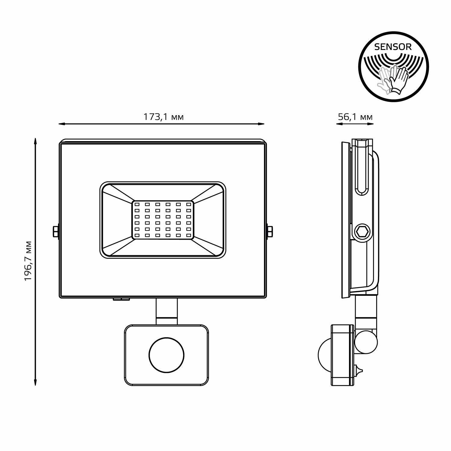 Прожектор LED с датчиком движения 30W 220V IP65 холодный свет 6500К черный Gauss Elementary-S