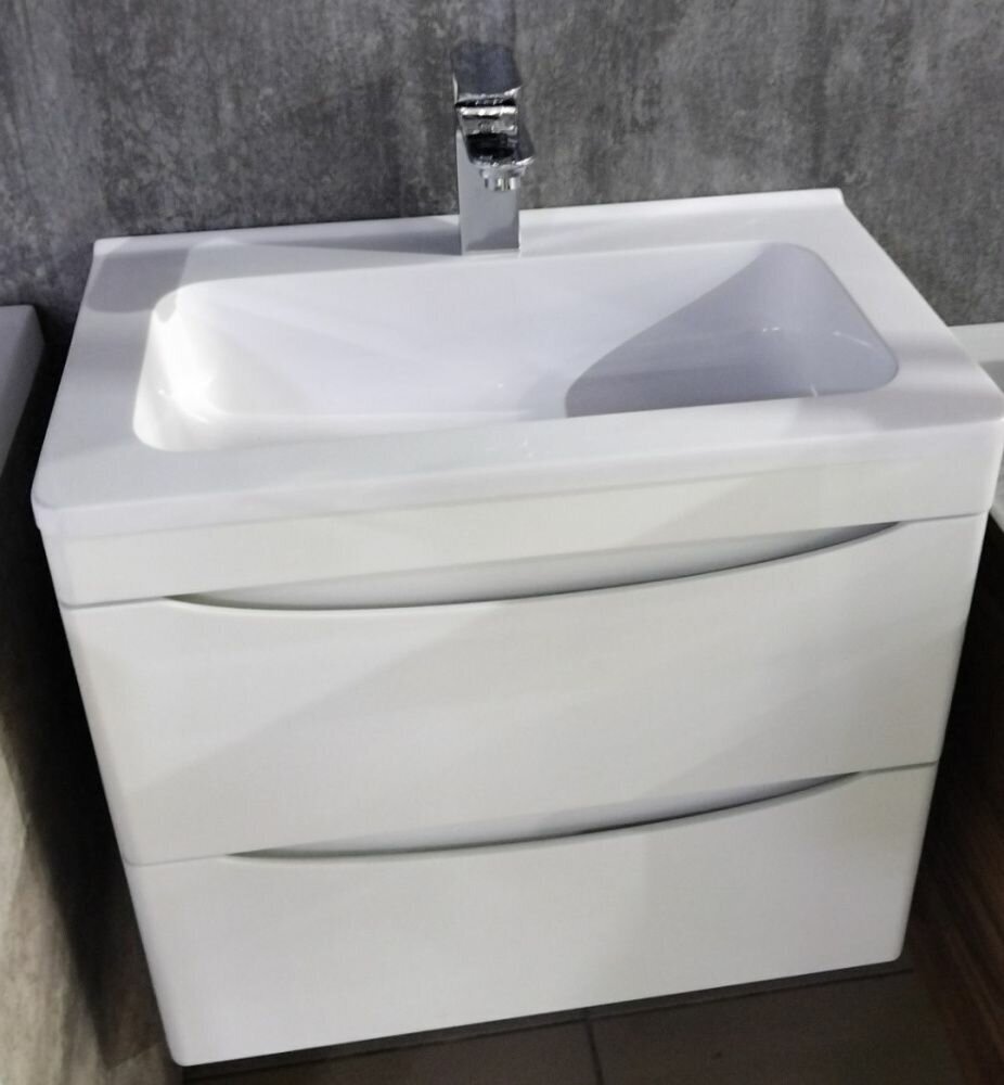 Купить Тумба подвесная Style Line "Бергамо мини 80" (2 ящ.) + Умывальник Каре Люкс мини 800х350 Люкс антискрейтч белый, PLUS