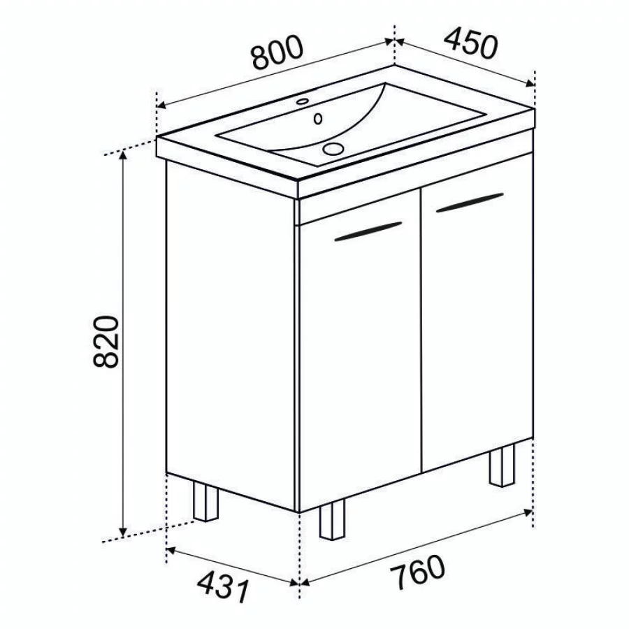 Тумба Emmy "Рокард 80 " напольная, распашные дверцы, белая, БЕЗ умывальника Como 80