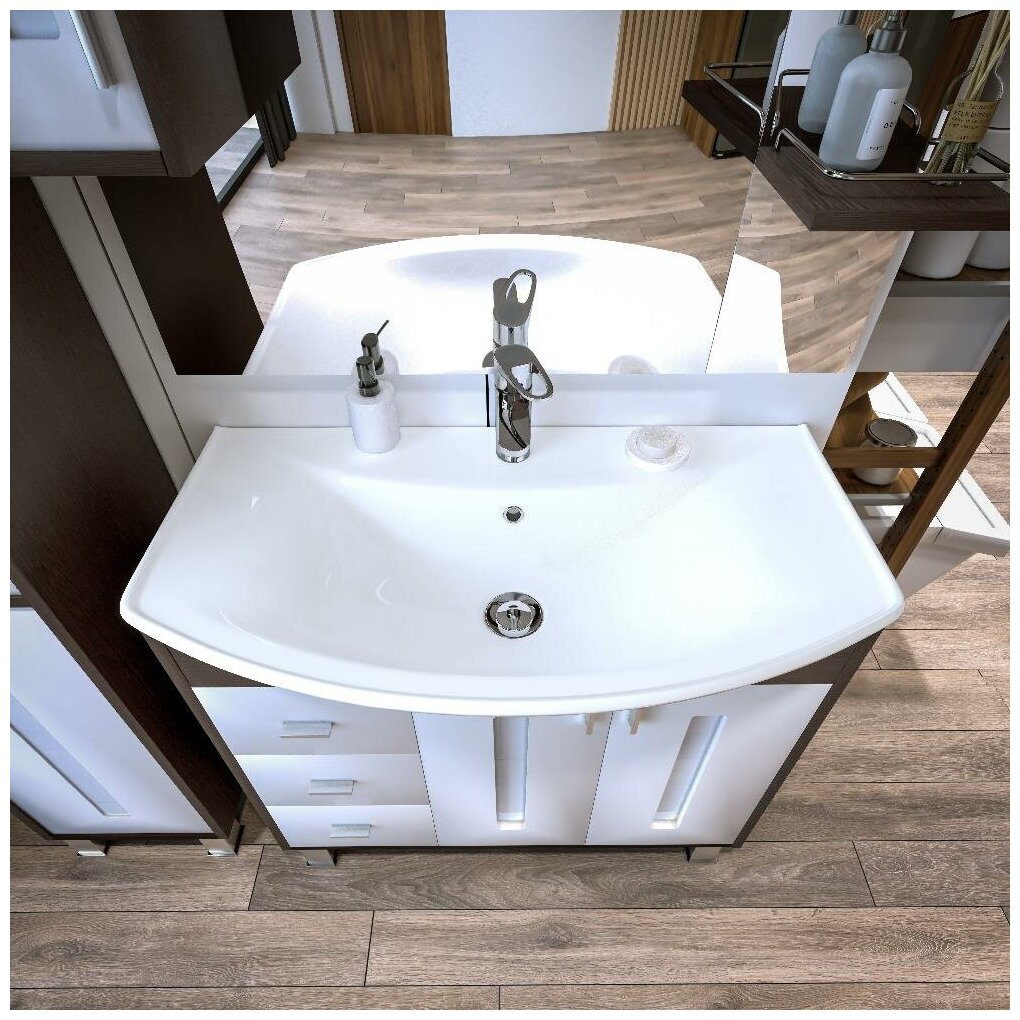 Тумба для ванной Бали 85 Венге / белый глянец с раковиной Стиль 85. интересное: