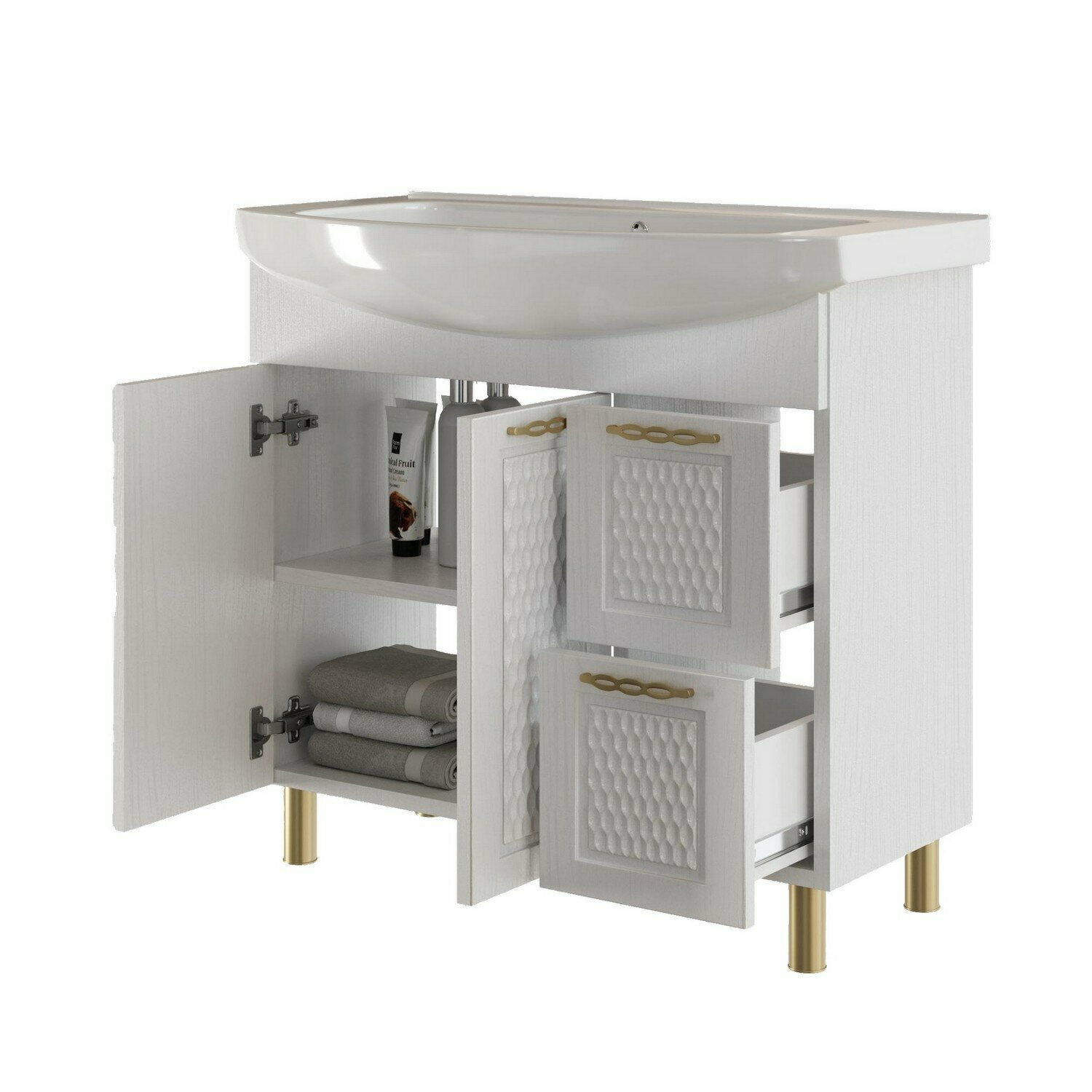 Тумба с раковиной для ванной Кристалл 50 белая.