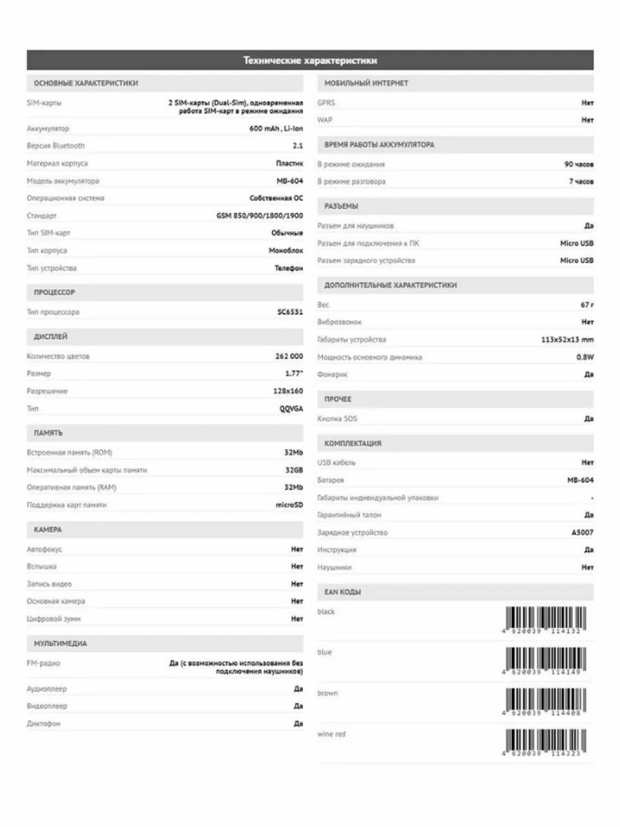 | Особенности | FM-радио / фонарик |