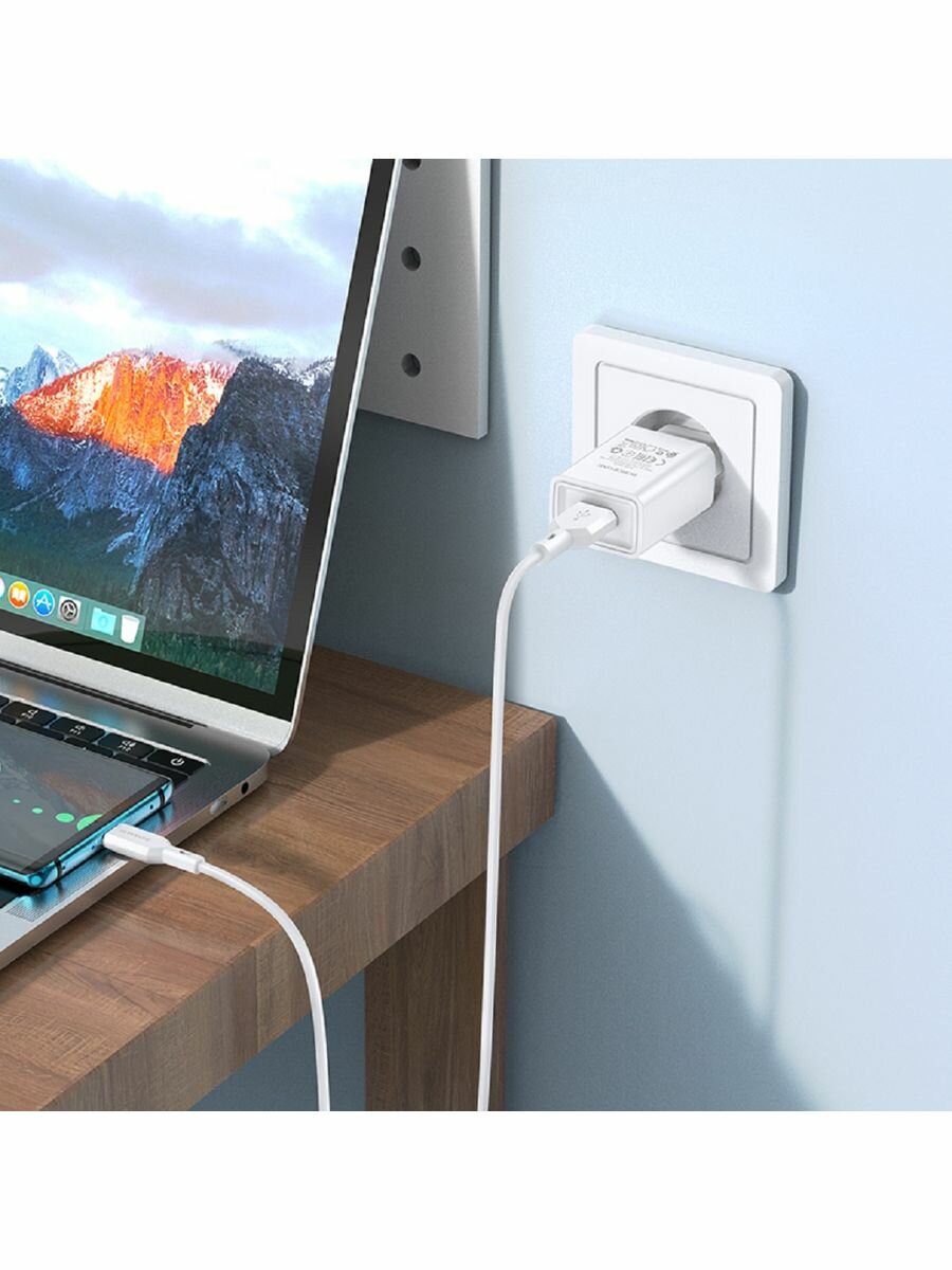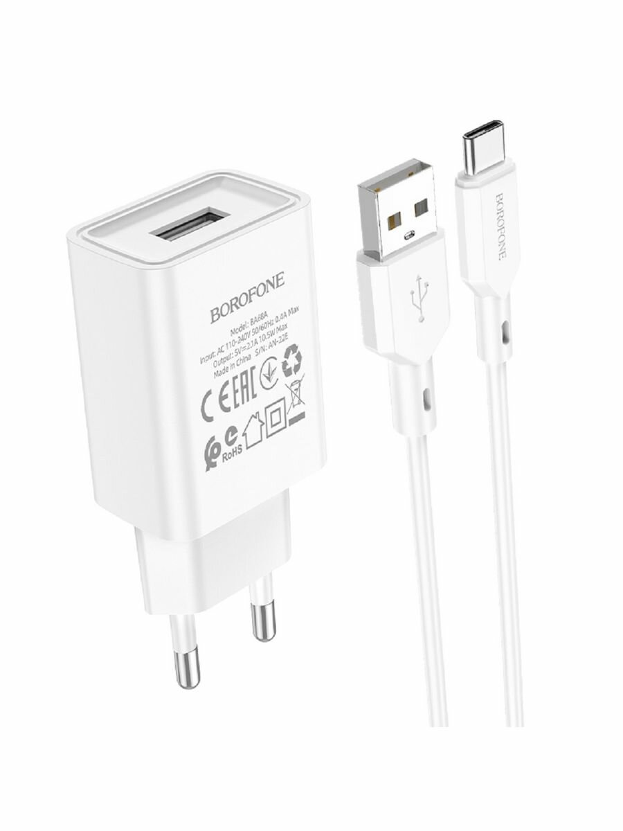 Сетевое зарядное устройство c USB Borofone, BA68A,+Type-C, белое, 2.1A интересное: