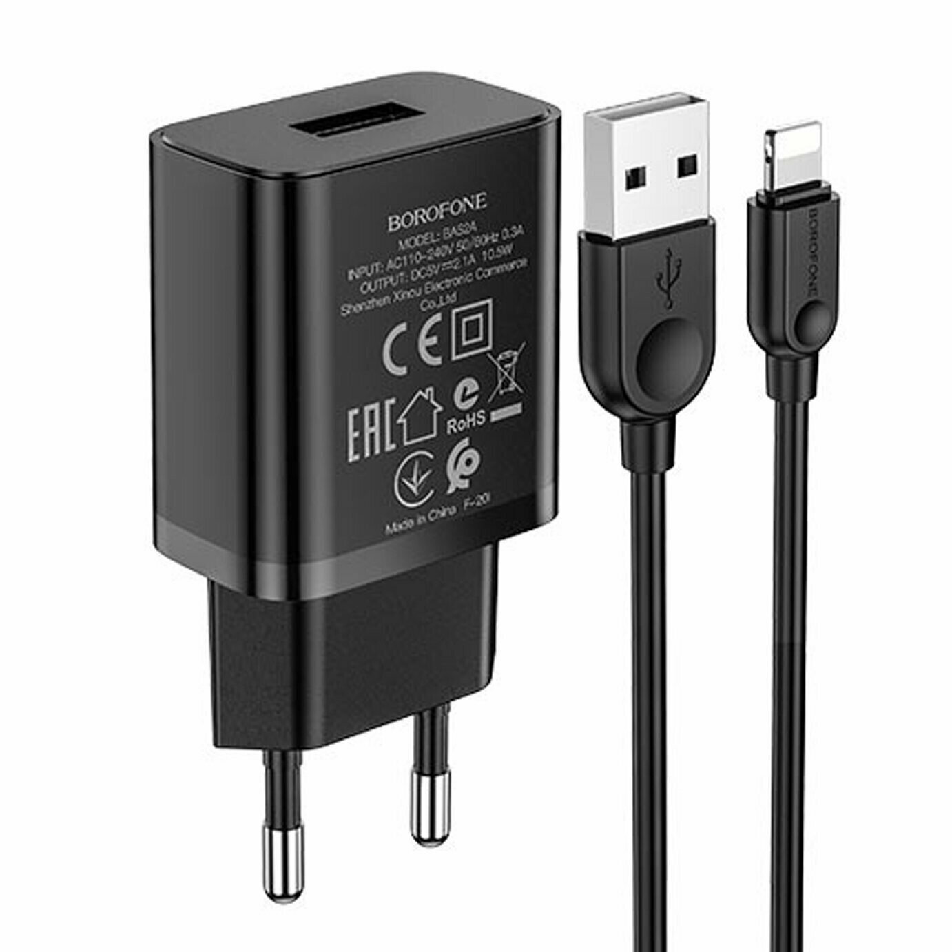 Адаптер Сетевой с кабелем Borofone BA52A Gamble 1USB, 5V, 2.1A +lightning, черный, 1 шт.