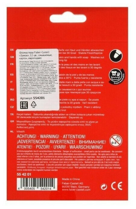 Комплект 30 наб., Фломастеры Faber-Castell Замок, 12цв., смываемые,картон,европодвес,554201