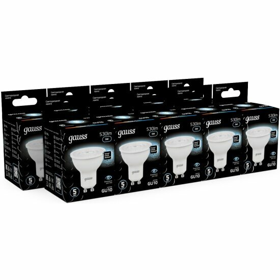 Ниже Вы можете прочитать отзывы на Светодиодная лампа Gauss LED GU10 5W SMD AC220-240V 4100K FROST 1/10/100, ознакомится с подробными характеристиками, посмотреть интересные обзоры и фотографии на Светодиодная лампа Gauss LED GU10 5W SMD AC220-240V 4100K FROST 1/10/100.