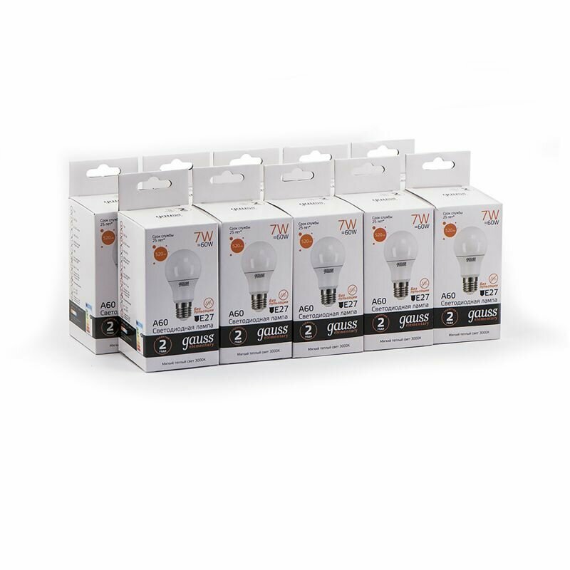 Светодиодная лампа Gauss LED A60 7W E27 2700K 1/10/100
