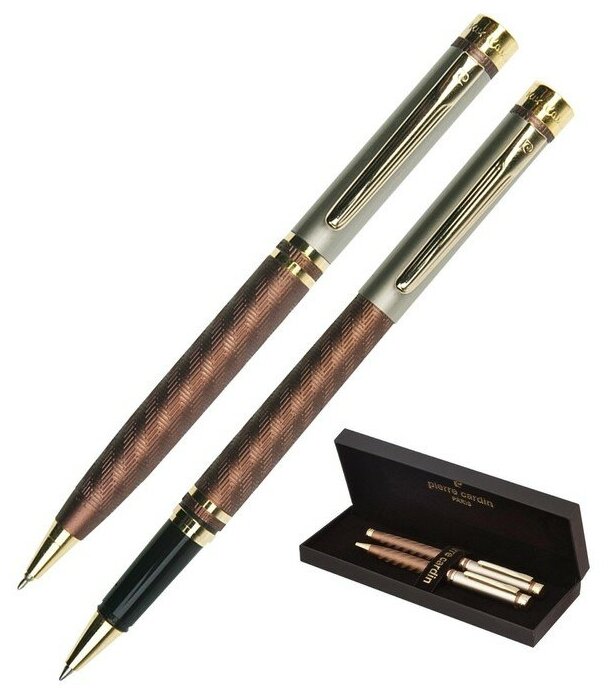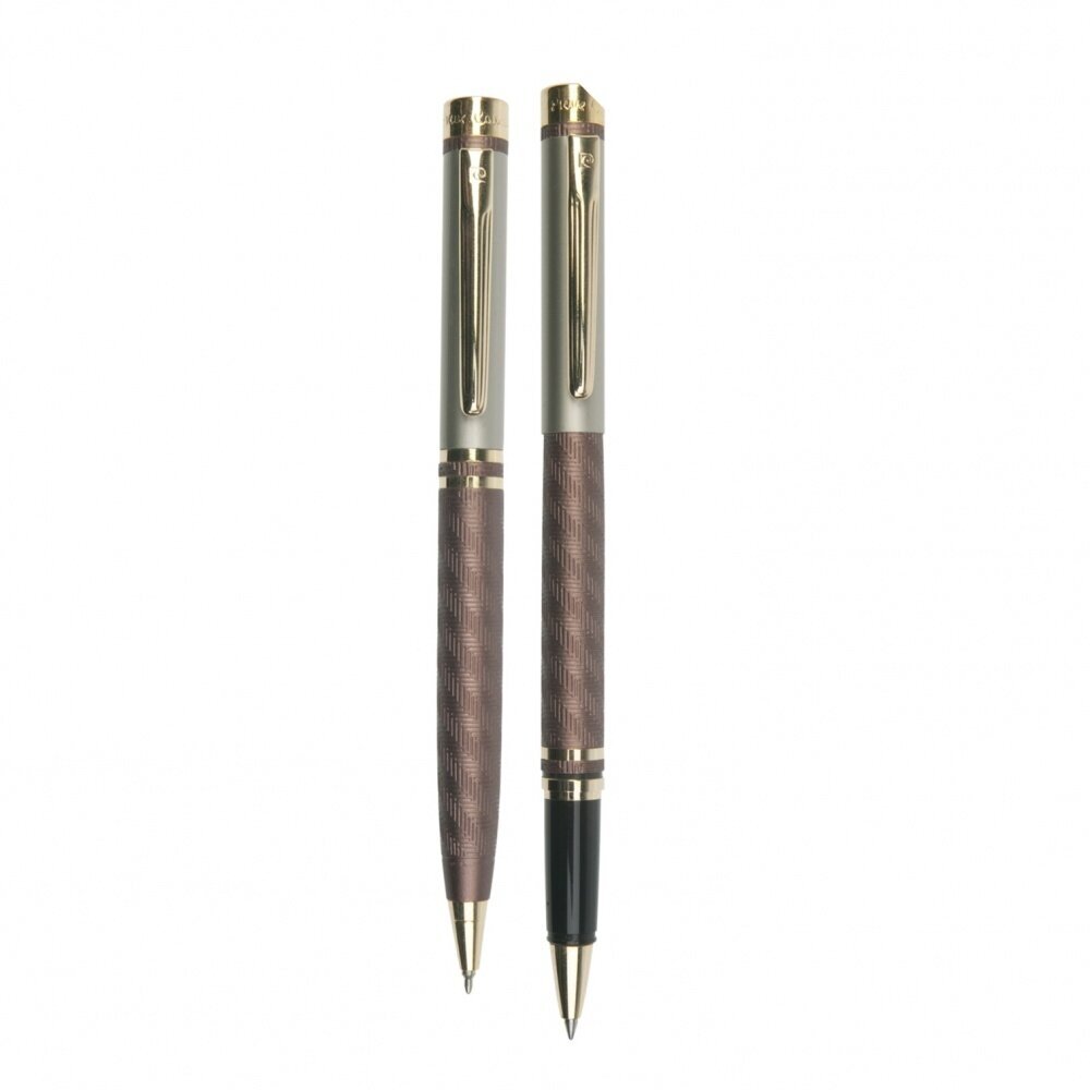 Набор Pierre Cardin Pen & Pen: ручка шариковая + роллер, латунь, цвет коричневый (PC0824BP/RP)
