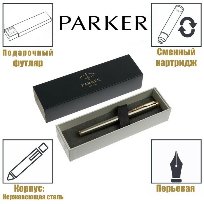 Ручка перьевая Parker IM Core Brushed Metal GT F321, корпус из нержавеющей стали, синие чернила интересное: