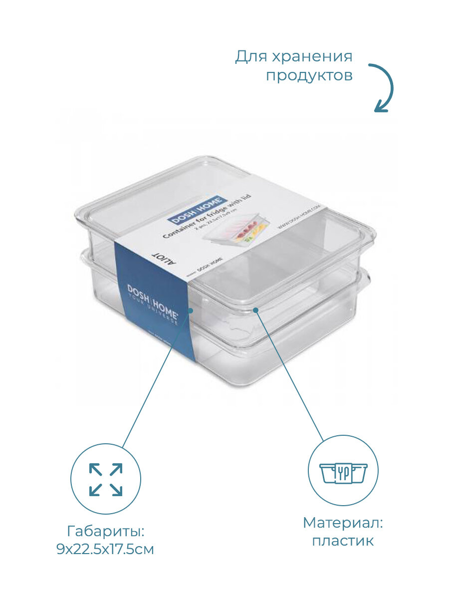Контейнер для холодильника, DOSH | HOME, ALIOT, с крышкой, 22.5х17.5х9см интересное: