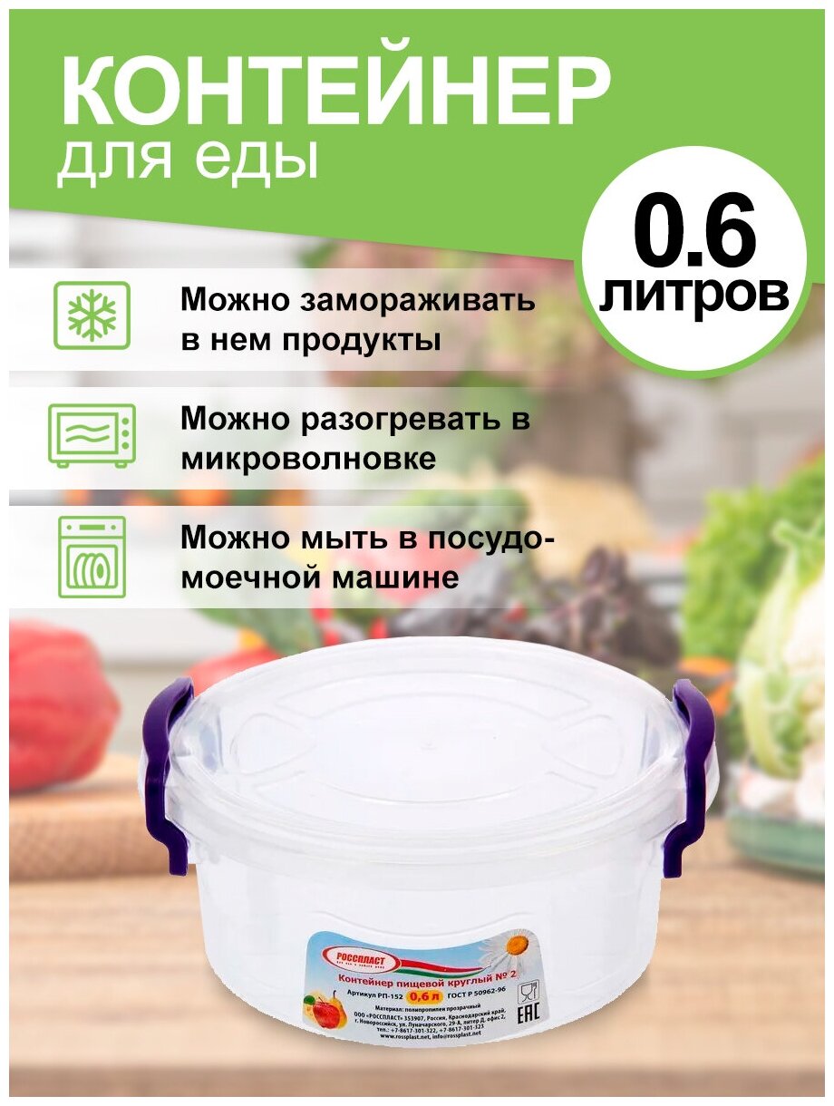 Контейнер пищевой круглый 0.6 л Росспласт интересное: