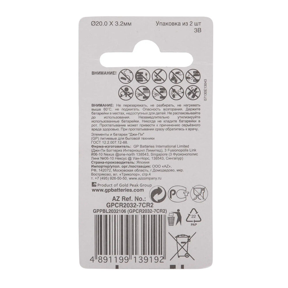 СохранитьБатарейка GP CR 2032 3V Blister, упаковка 2 шт. интересное: