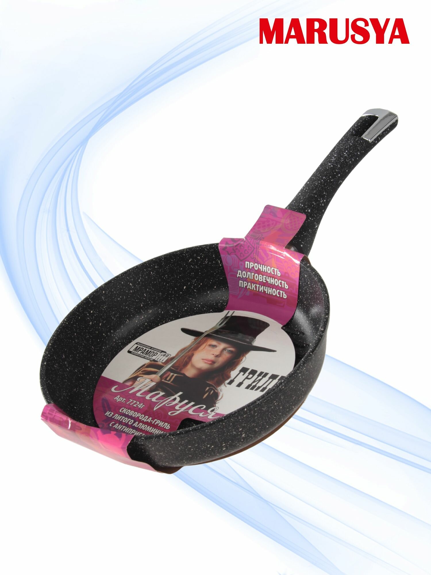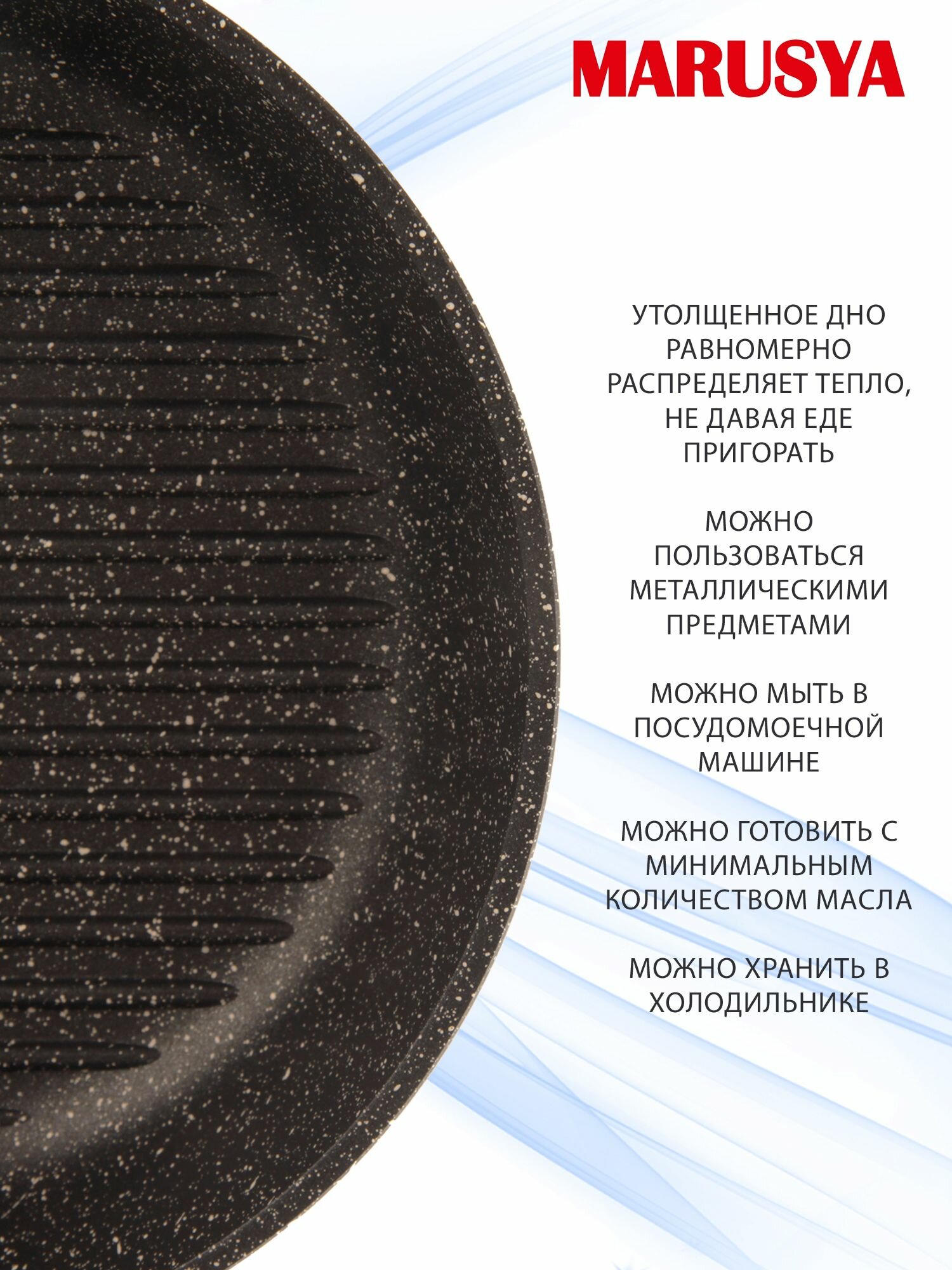 Сковорода-гриль Маруся Мрамор 7726г 26 см (литая антипригарная) черная интересное: