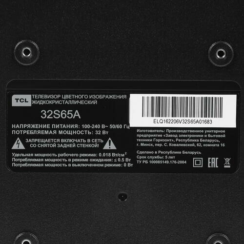 32" Телевизор TCL 32S65A LED, HDR, черный интересное: