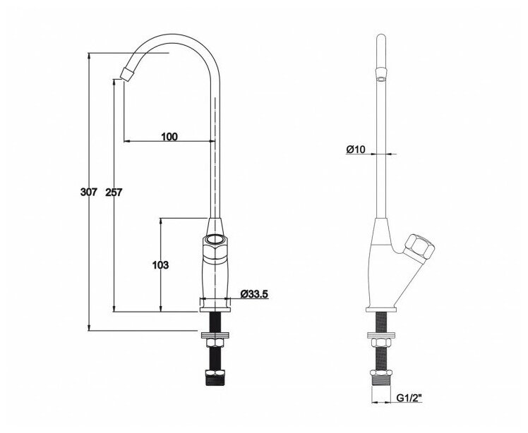Смеситель под фильтр на питьевую воду Mono P002 хром, шт.