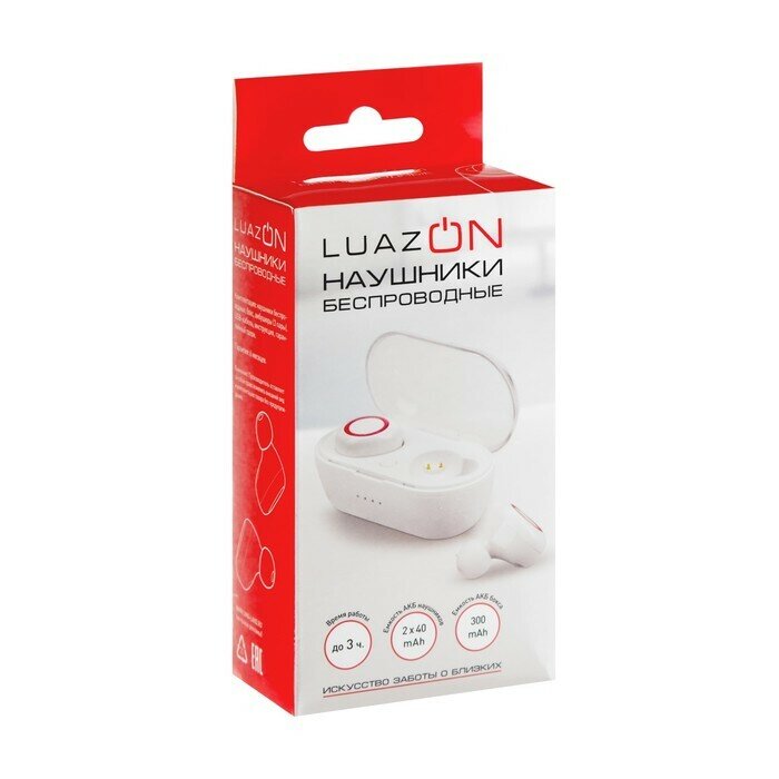 Luazon Home Наушники беспроводные LuazON VBT 1.20, вакуумные, Bluetooth 5.0, 300 мАч бокс, белые
