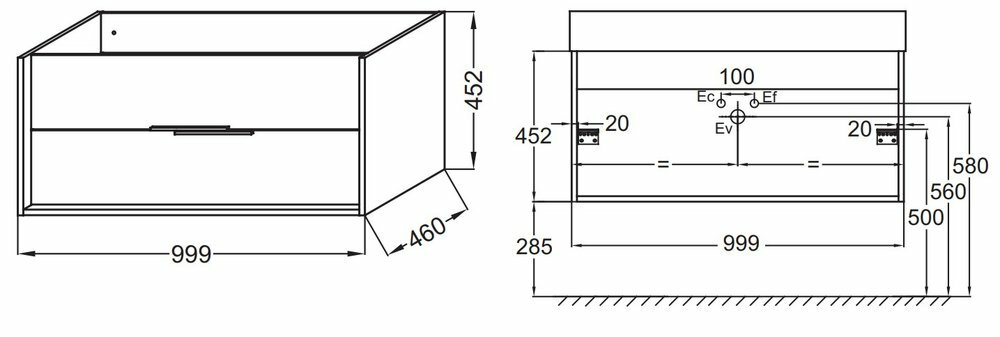 Тумба под раковину 100 подвесная BELBAGNO Albano Rovere Nature Grigio ALBANO-1000-2C-SO-RNG