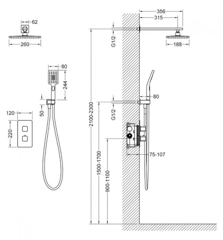 | Комплектация | Смеситель с монтажной коробкой / скрытого монтажа / с термостатом - 1 шт. Штанга тропического душа с декоративным отражателем - 1 шт. Тропический душ (пластик) - 1 шт. Ручная лейка (пластик) - 1 шт. Держатель ручной лейки с подключением душа (латунный) - 1 шт. Декоративная накладка смесителя (латунная) - 1 шт. Ручка дивертора - 1 шт. Ручка управления термостатом - 1 шт. Шланг душа 1,5 м - 1 шт. Инструкция - 1 шт. |