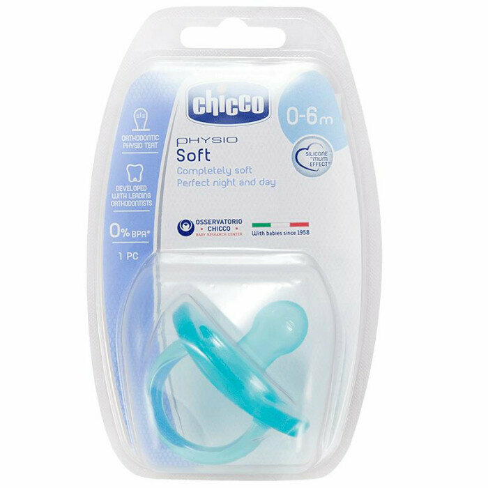 Соска пустышка для новорожденных Chicco Physio Soft анатомическая силиконовая, 0 до 6 мес.