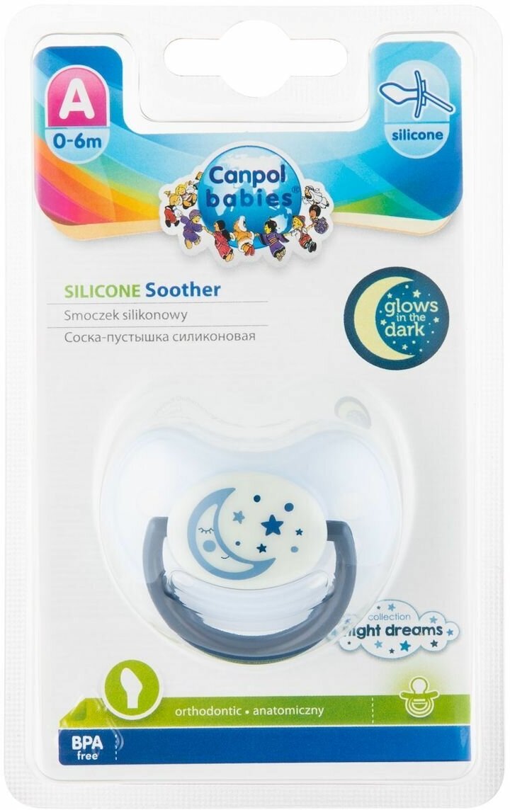 Пустышка анатомическая силиконовая, 0-6 Night Dreams, цвет: синий интересное: