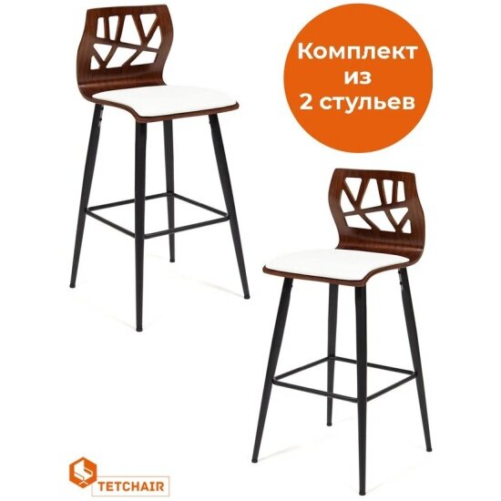 Стул барный TETCHAIR TAIGA (mod.4042B) дерево / экокожа, 47х48х102 см, высота сиденья 74 см, орех/белый (2шт/уп) интересное: