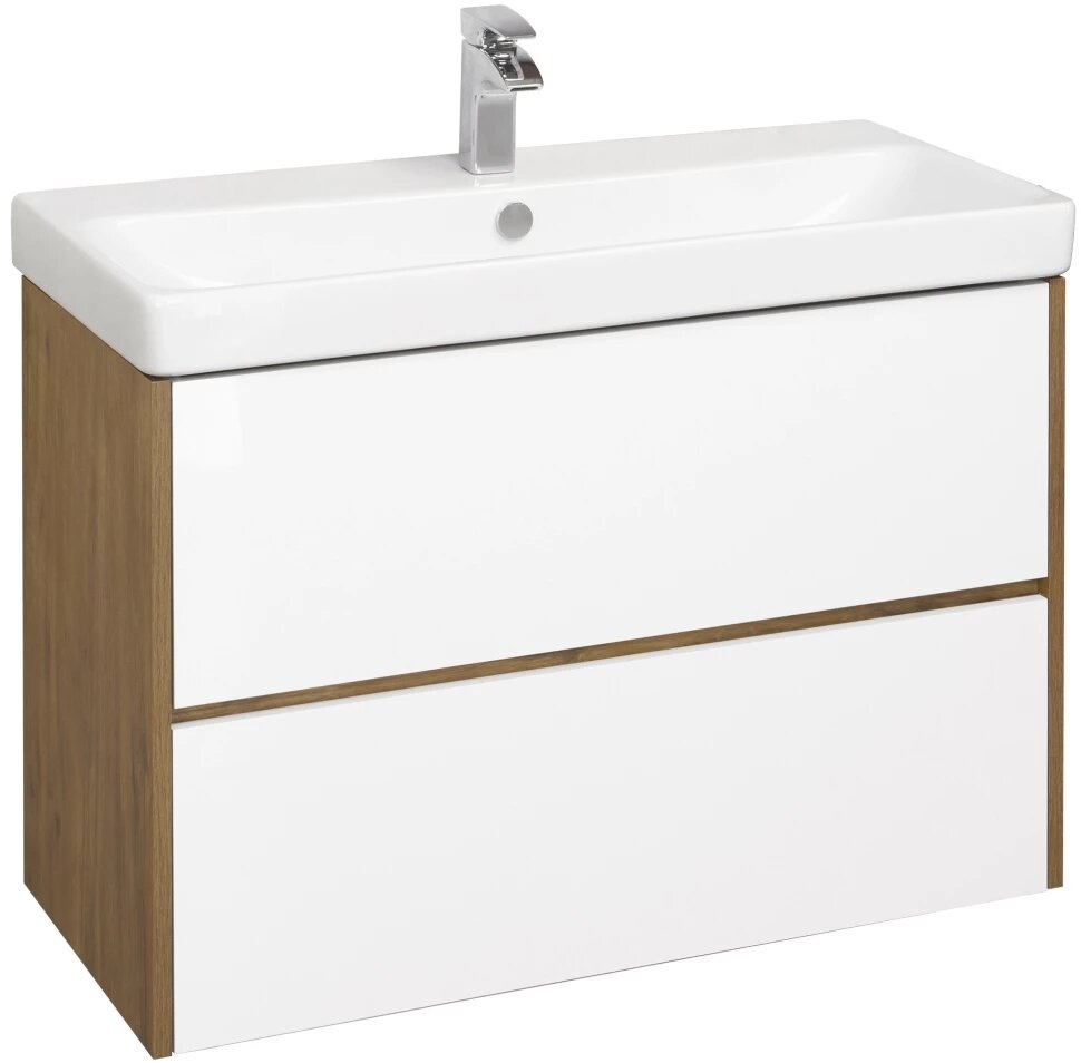 Купить Тумба с раковиной белый глянец/дуб рустикальный 90 см Акватон Сканди 1A2519K0SDZ90