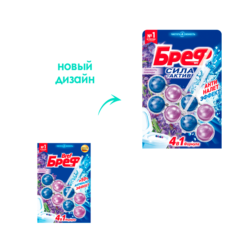 Подвесной блок для унитаза Бреф Сила-Актив Свежесть Лаванды 4в1 Формула 2*50 г