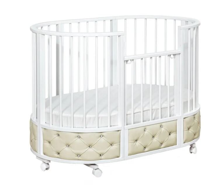 Детская овальная кроватка Островок уюта Eva Vip с маятником - белый, слоновая кость интересное: