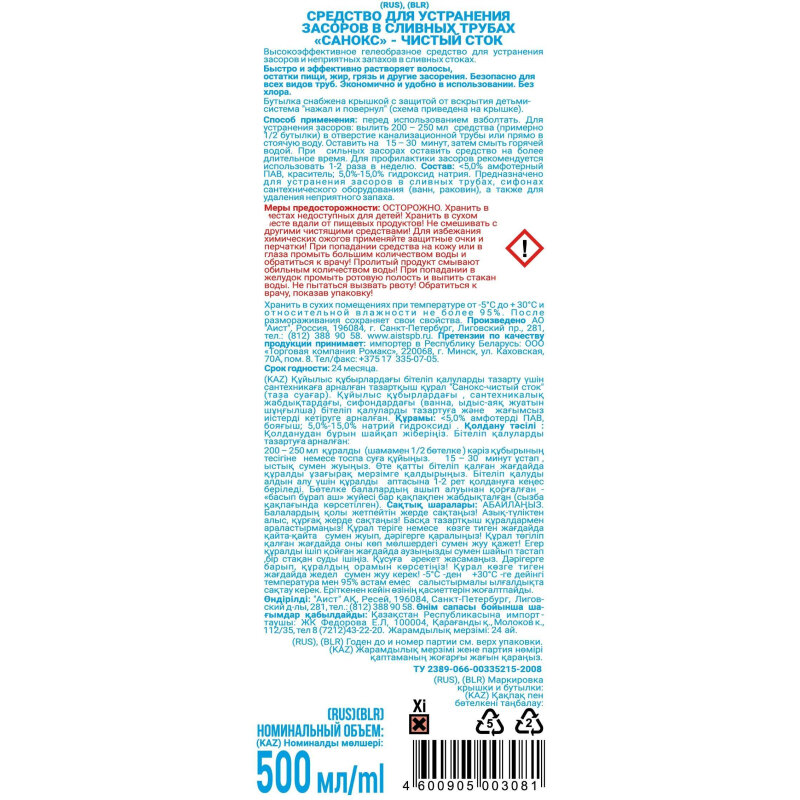 Средство для удаления засоров санокс Чистый сток 500мл 4600905003081