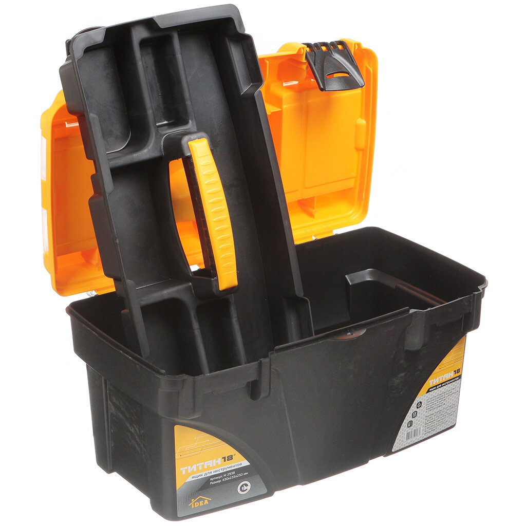 Ящик для инструментов титан 18" (с секциями) черный с желтым IDEA (М-Пластика) М2936