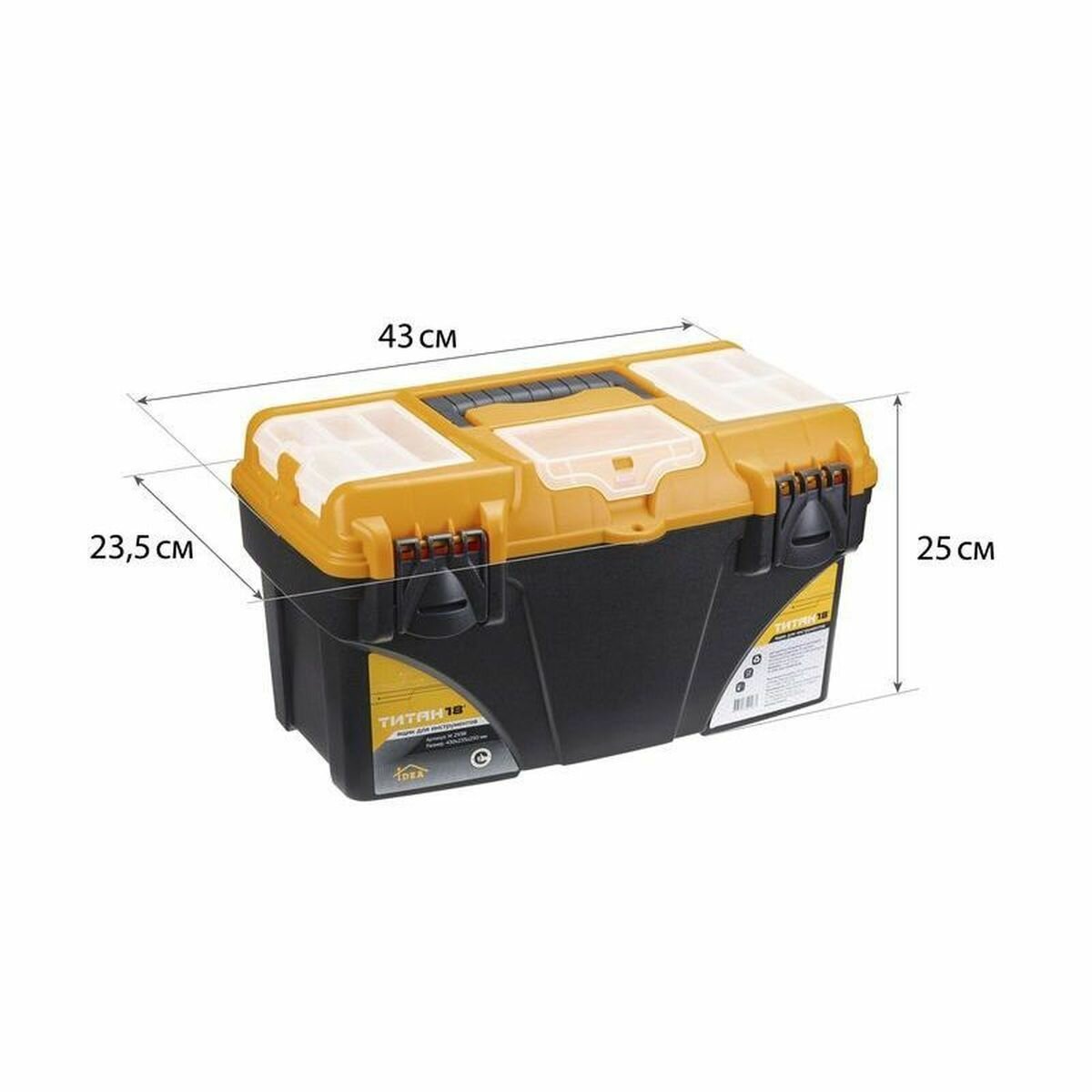 Ящик для инструментов, 18 ', 43х23.5х25 см, пластик, Idea, Титан, 3 органайзера, М 2938
