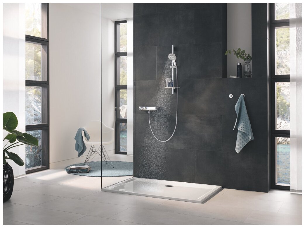 | Комплектация | ручной душ Rainshower SmartActive 130 (26 544) / душевая штанга 600 мм с металлическими настенными креплениями / душевой шланг 1750 мм (28 388 000) / Полочка GROHE EasyReach |
