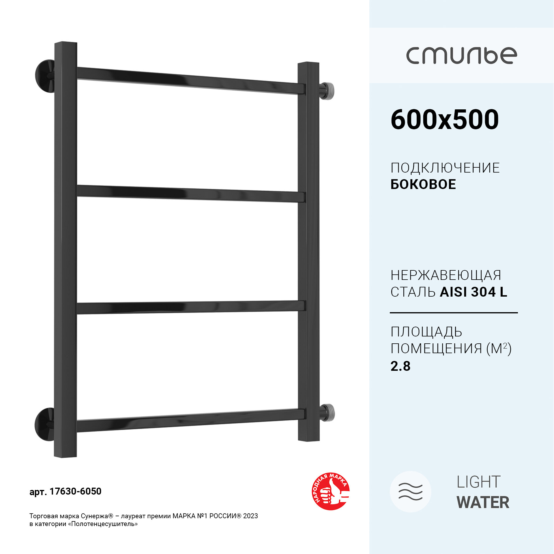 Полотенцесушитель электрический Стилье Формат 22 600х500 правый Матовый чёрный