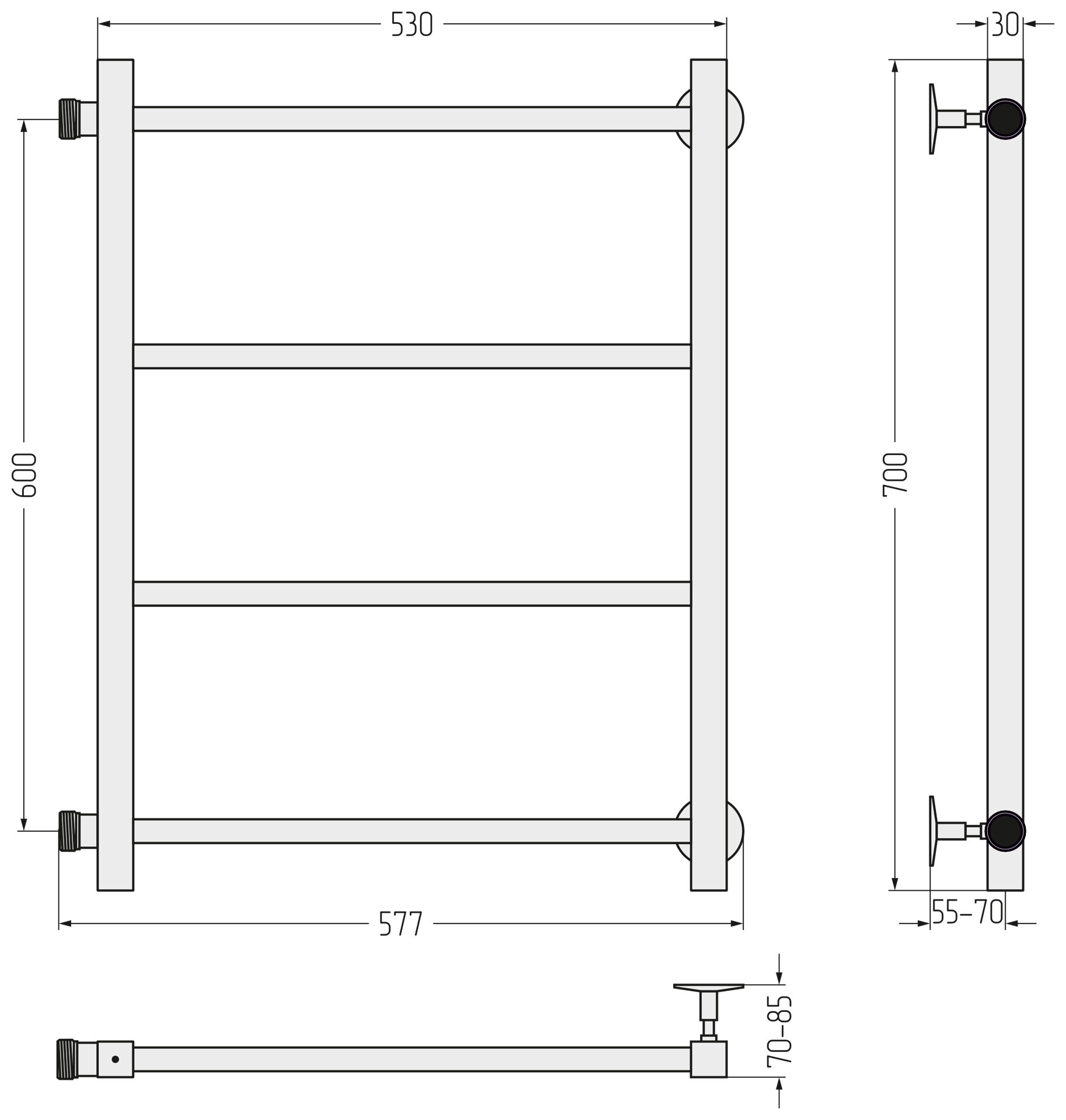 Полотенцесушитель электрический Стилье Формат 22 600х400 правый Без покрытия 00522-6040