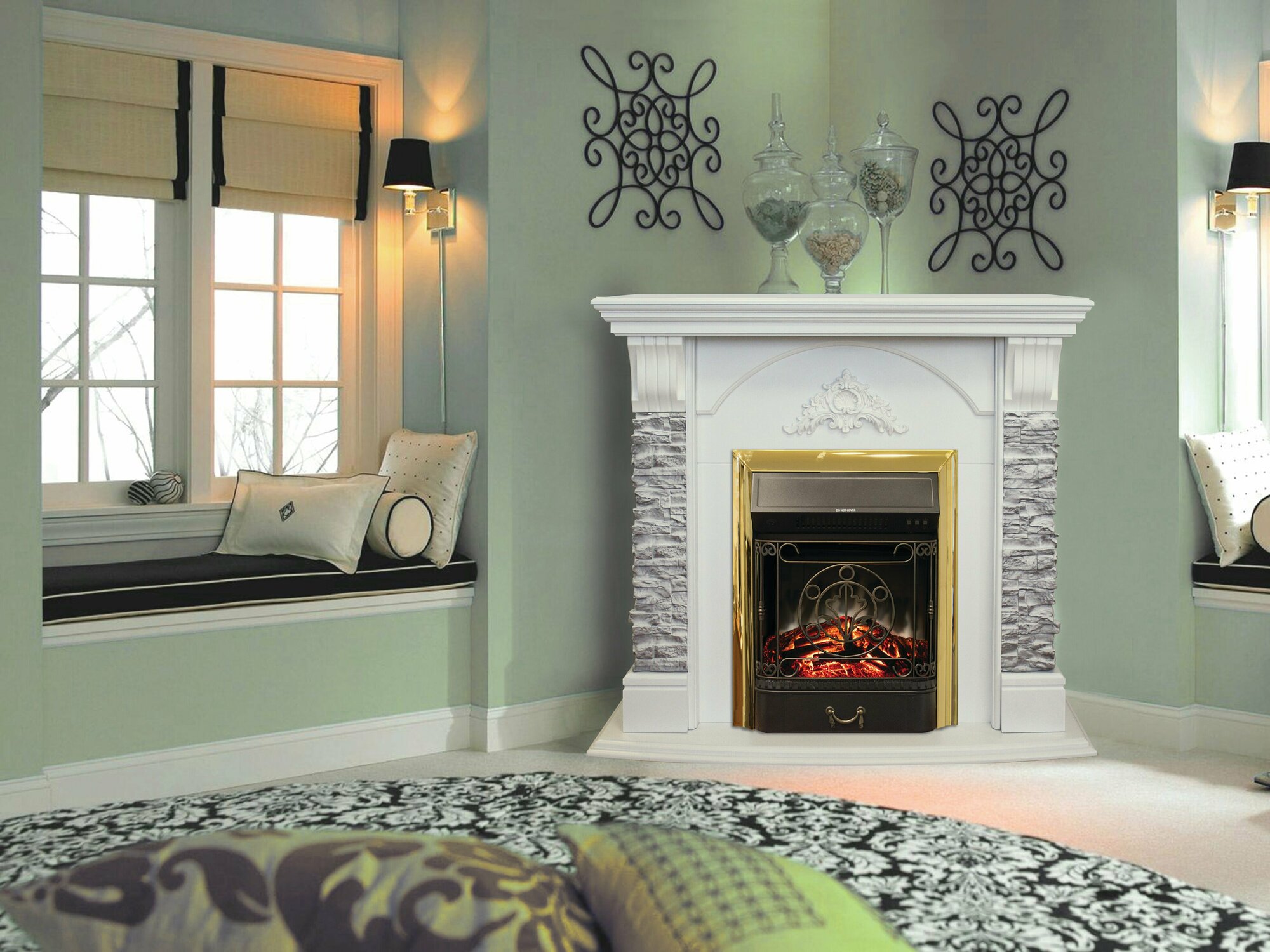 Купить Электрокамин RealFlame Athena Corner GR WT с Majestic Lux brass S