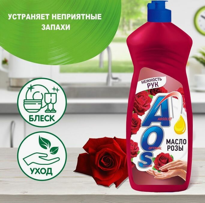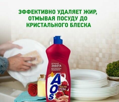 Средство для мытья посуды AOS Масло розы, 900 мл 10445394