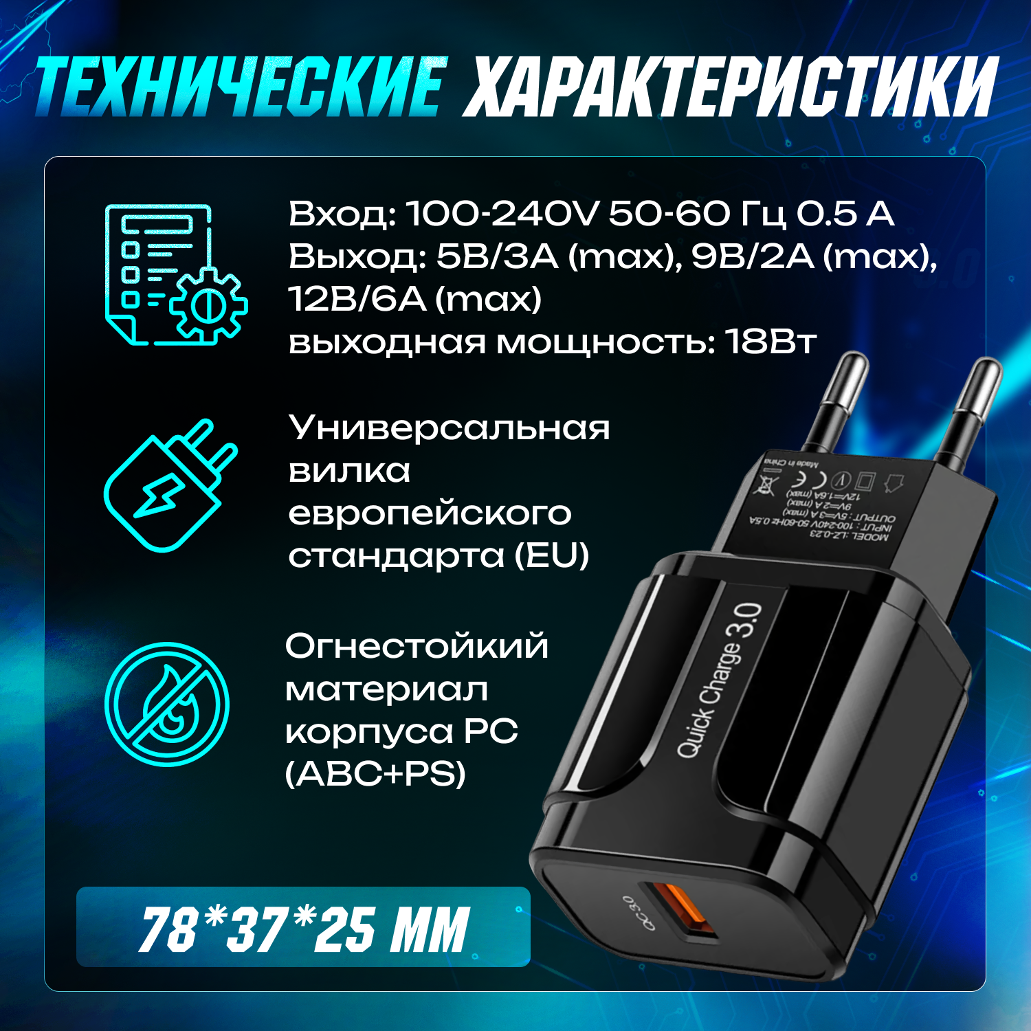 Ниже Вы можете прочитать отзывы на Быстрая зарядка для телефона (18W/QC3.0A) с кабелем USB Type-C / Сетевой блок питания / Зарядное устройство / Скоростной адаптер / цвет черный, ознакомится с подробными характеристиками, посмотреть интересные обзоры и фотографии на Быстрая зарядка для телефона (18W/QC3.0A) с кабелем USB Type-C / Сетевой блок питания / Зарядное устройство / Скоростной адаптер / цвет черный.