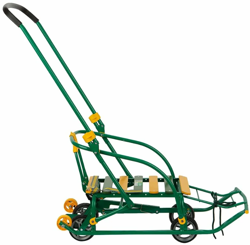 Санки Nikki 3 зеленый (бело-зеленые рейки) со складной спинкой и складной ручкой на 4 колесах