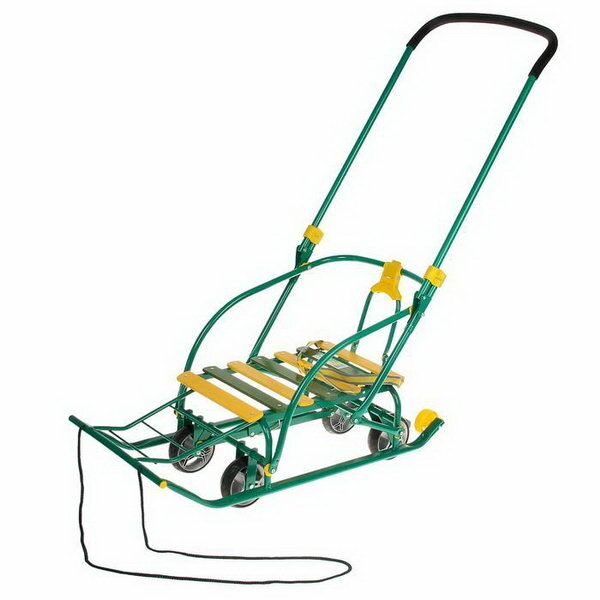 Санки Nika "Тимка", Универсал, зеленые, спинка, толкатель, колеса (Т3КУ/З2)