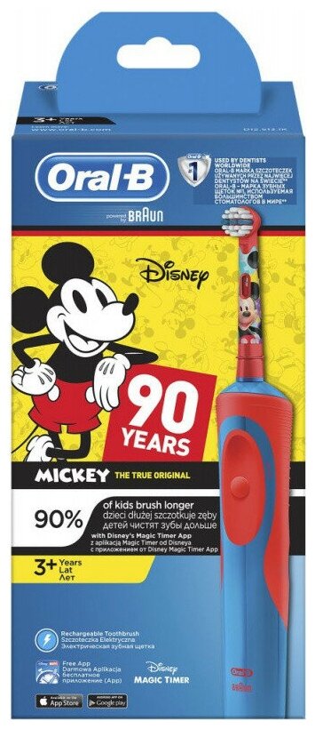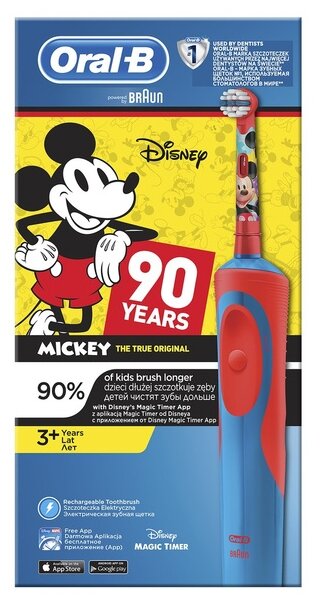 Электрическая зубная щётка Oral-B Mickey for Kids D12.513.1k, type 3709, 7000 об/мин, АКБ Oral-B 105