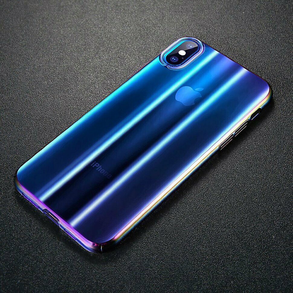 Накладка задняя Baseus для APPLE iPhone XS, Aurora, пластик, прозрачная, глянцевая, цвет: синий интересное: