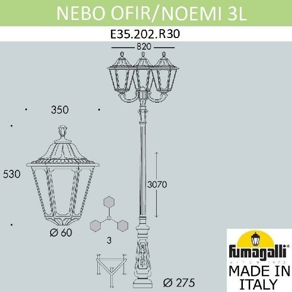 Парковый фонарь FUMAGALLI NEBO OFIR/NOEMI 3L E35.202.R30.WYH27