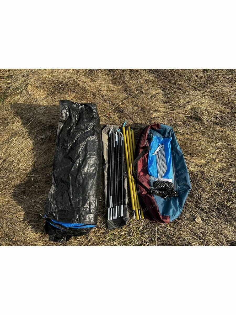| Плюсы: | Мелкая москитная сетка.Достаточно вместительная палатка, на двоих целые апартаменты. В комплекте много верёвок для растяжки палатки, для растяжки тента перед входом непонятные палки,как они между собой скрепляются мы так и не разобрались,но в комплекте есть. 12 кольев длиной 10 см, они не совсем подходят для растяжки,веревка с них съезжает,они гладкие. |