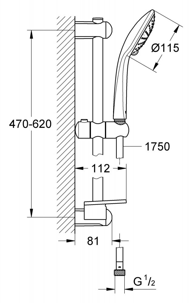 Душевой гарнитур GROHE Euphoria (ручной душ, штанга 600 мм, шланг 1750 мм), хром (27230001)