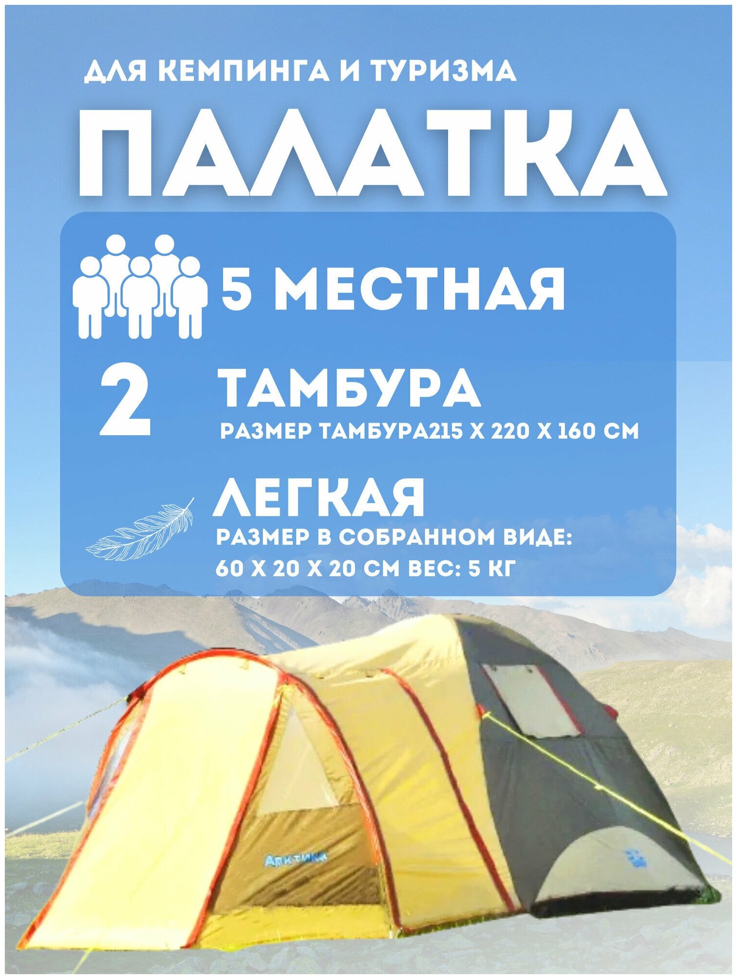 Палатка кемпинговая четырехместная LANYU LY-278 бежевый/ зеленый/ Палатка / Для туризма / Двухслойная / С тамбуром интересное: