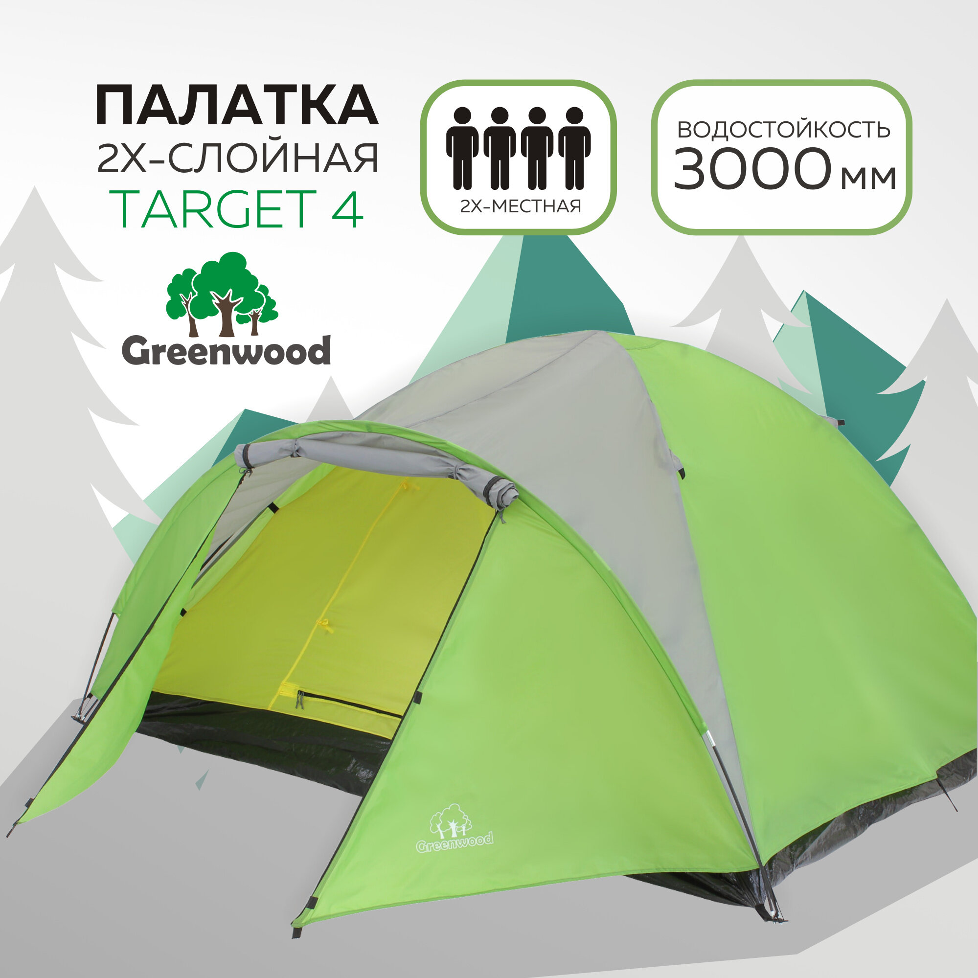 Палатка 4-х местная Greenwood Target 4 лайм/серый интересное: